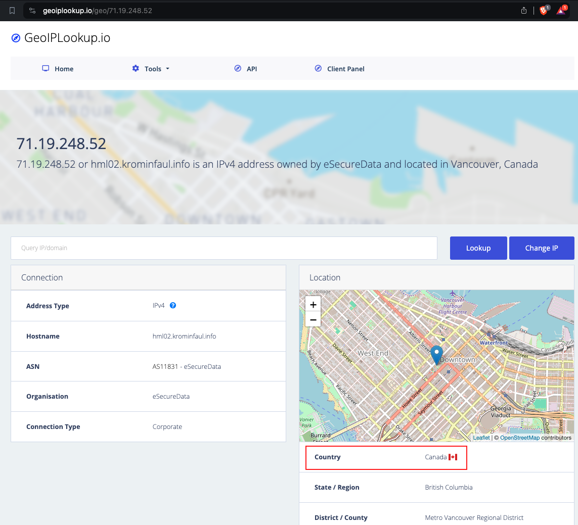 - What country is the ip address from? Canada