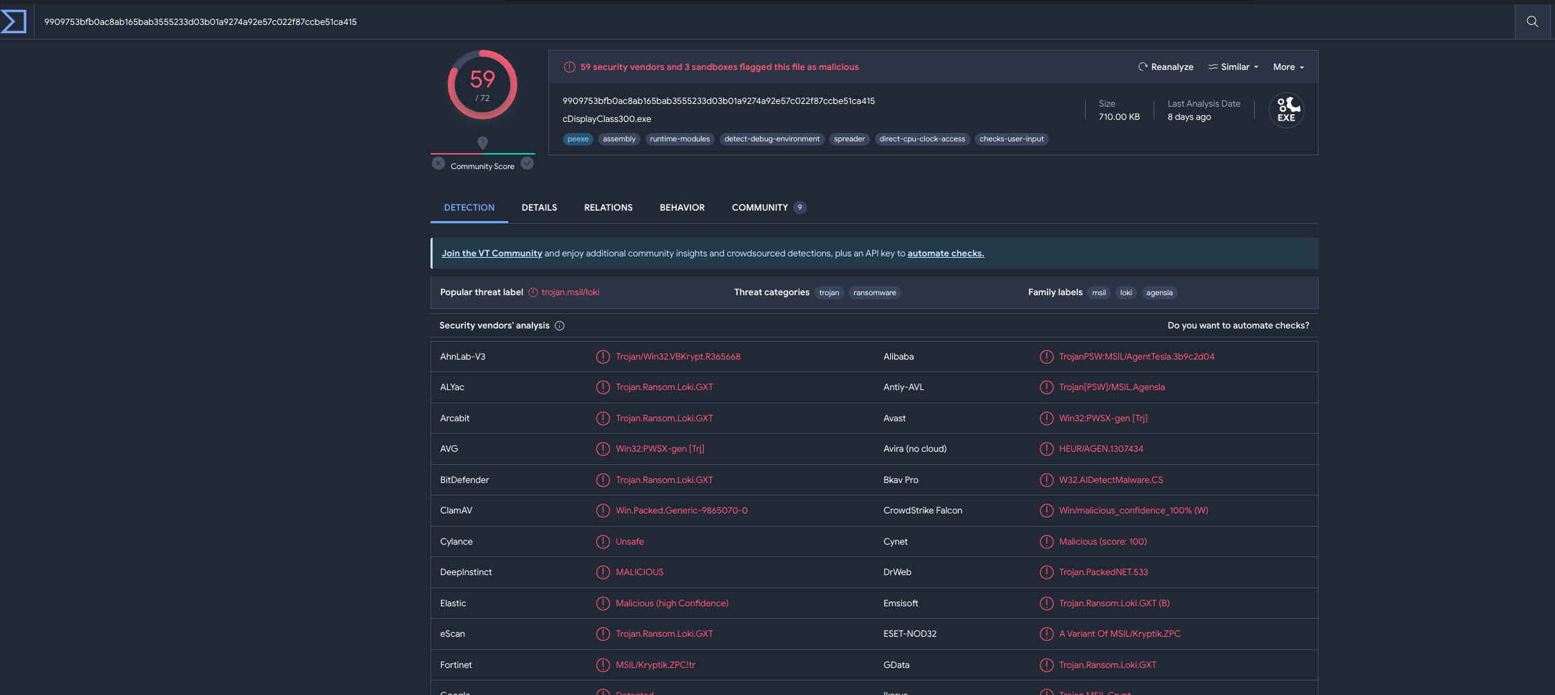 - What is the sha256 hash of the File? 9909753bfb0ac8ab165bab3555233d03b01a9274a92e57c022f87ccbe51ca415
